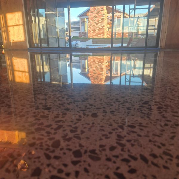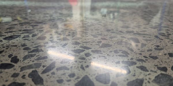 High-end, multi-step flooring solution that involves physically grinding, honing, and polishing a concrete surface using heavy-duty equipment with increasingly finer diamond-bonded abrasives. The process also includes applying a chemical hardener, or densifier, to strengthen and solidify the concrete, which allows it to be polished to a durable, reflective, and sleek finish.